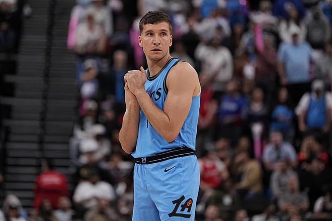 博格達諾維奇在上賽季中段的一筆交易中被亞特蘭大老鷹送到了快船。在加盟快船之后,博格達諾維奇在NBA常規(guī)賽中總共出場30次,場均出場時間達到了25分鐘,場均數(shù)據(jù)為11.4分3.1籃板3.2助攻0.7搶斷0.2蓋帽,還有1.2次失誤和2.3次犯規(guī),投籃命中率47.4%,三分命中率42.7%,罰球命中率87.5%。到了季后賽,博格達諾維奇總共出場7次,場均出場時間達到了16.7分鐘,場均數(shù)據(jù)為6.4分2.9籃板2.1助攻0.4搶斷,還有1.6次失誤和3.6次犯規(guī),投籃命中率36.4%,三分命中率29.2%,罰球命中率85.7%。